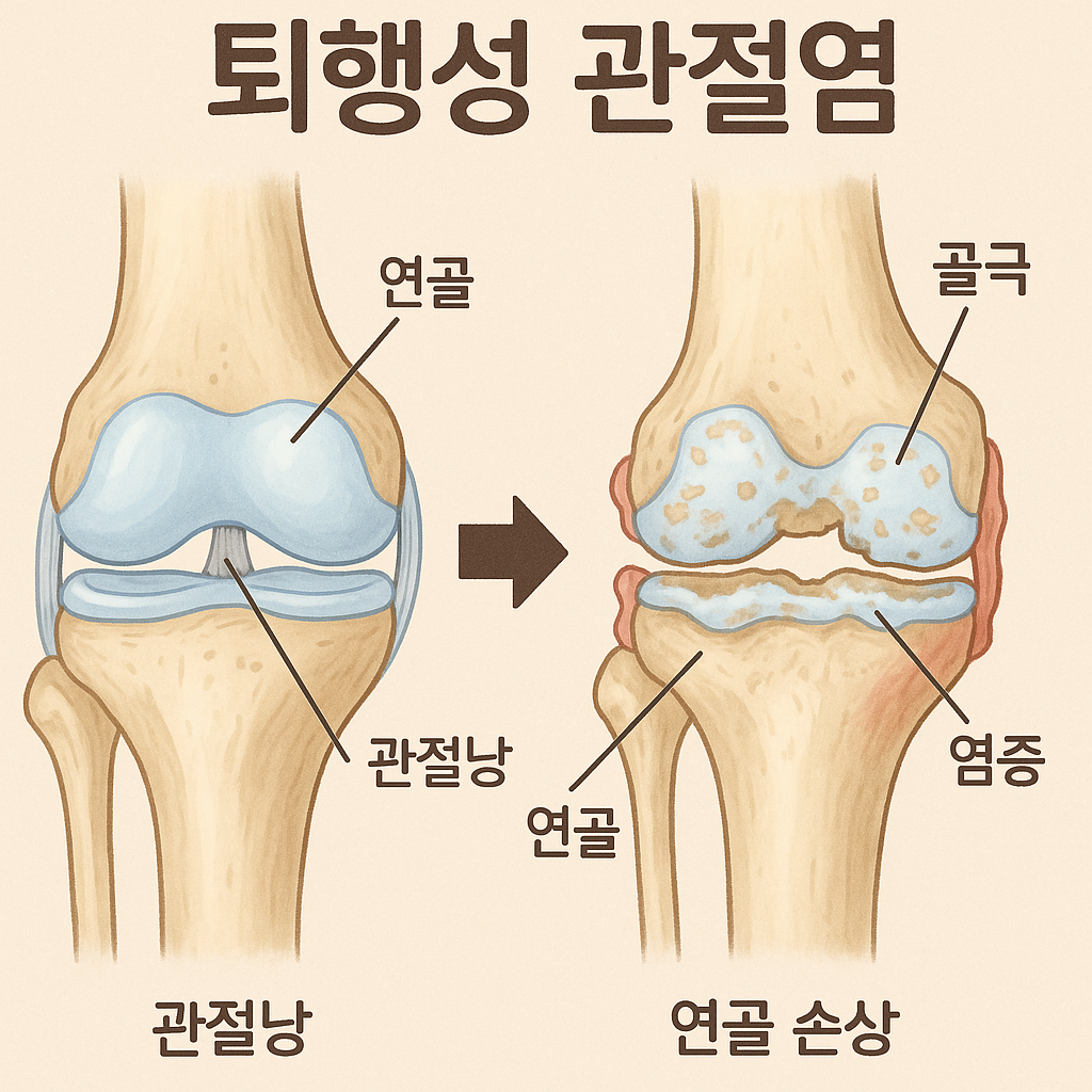 퇴행성 관절염(골관절염)은 단순히 ‘나이 들어 생기는 병’이 아니라, 조기 예방과 관리로 충분히 삶의 질을 지킬 수 있는 질환입니다.