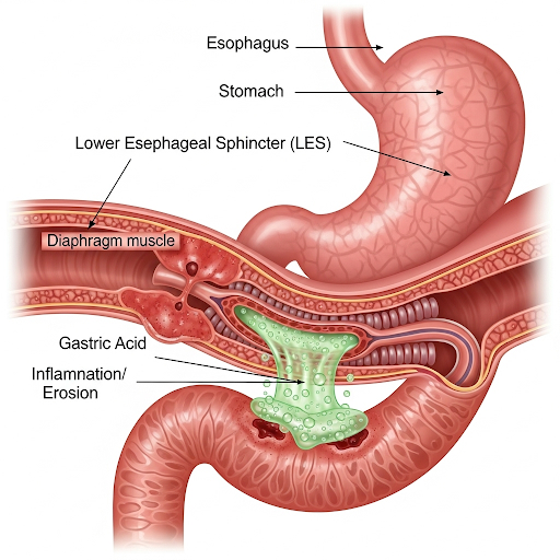 역류성 식도염은 여러 요인이 복합적으로 작용해 발생합니다.