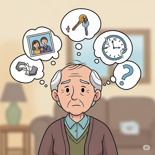 자주 했던 일도 기억하지 못하고, 대화 중 단어가 생각나지 않습니다.